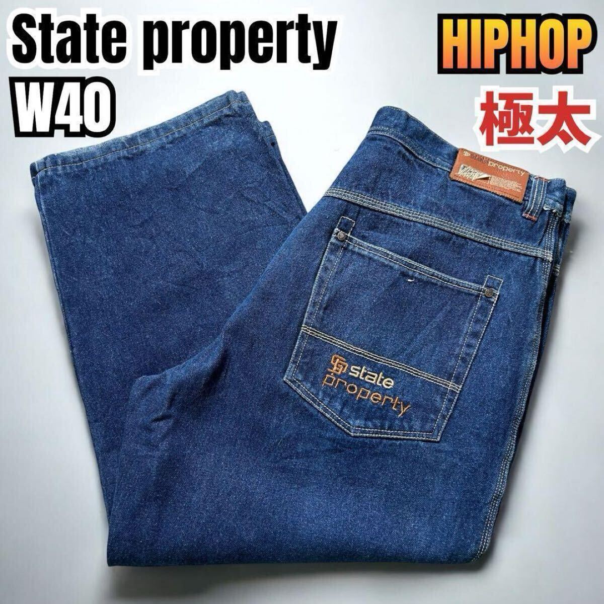 - 90年代 ステートプロパティ state property バギーデニム ジーンズ W40 HIPHOP ストリート B系 極太 ワイドパンツ スケーター 古着 / 3703