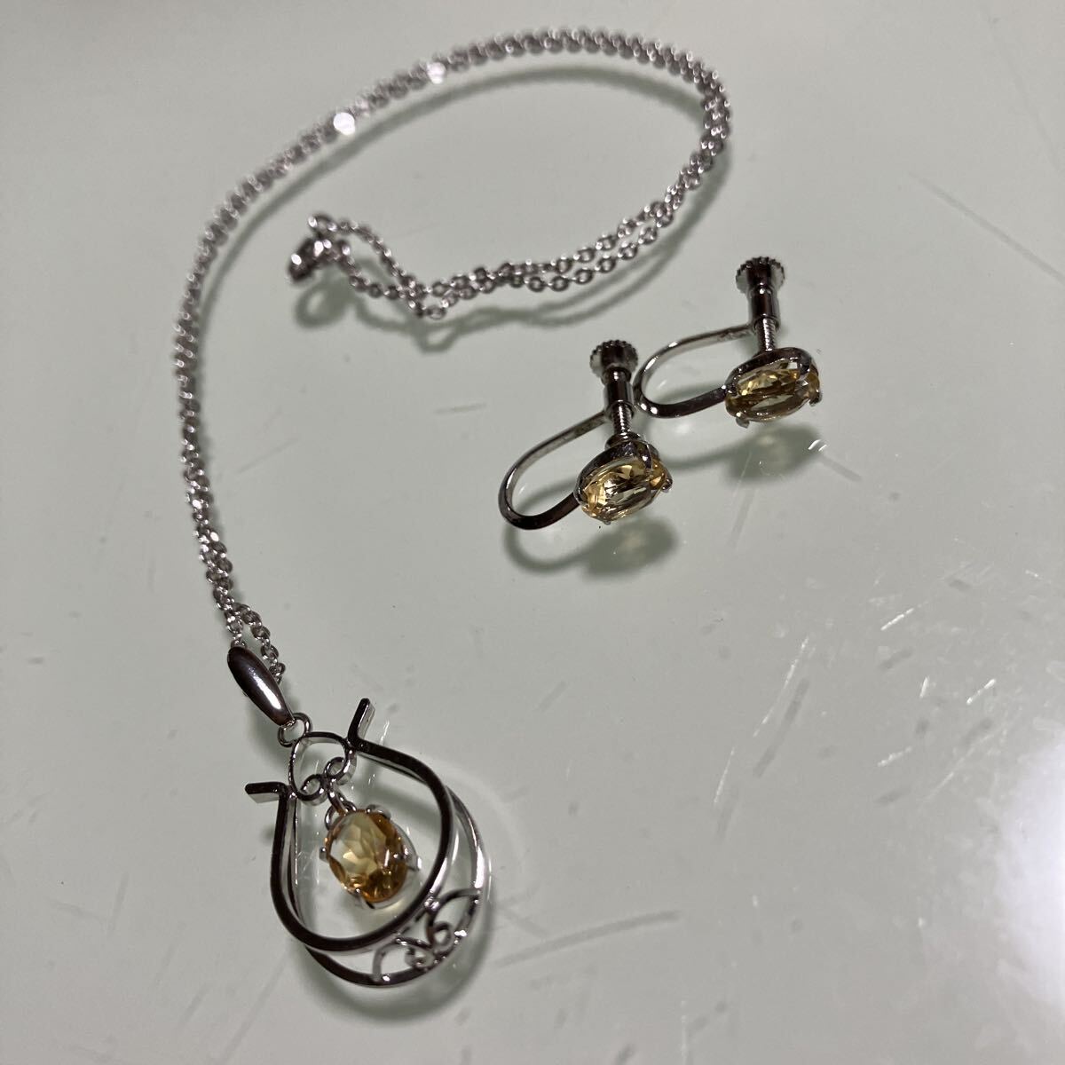 - 保管品 本水晶(黄色) ネックレス & イヤリング セット