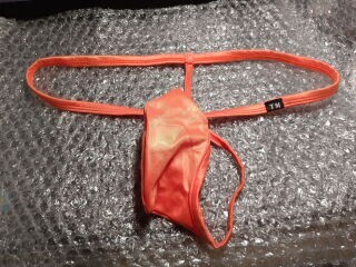- TMコレクション、メンズビキニ、蛍光オレンジ色、フロントポーチ立体的フルシーム、Tバック、ポリエステル80%、M(76~84)サイズ、