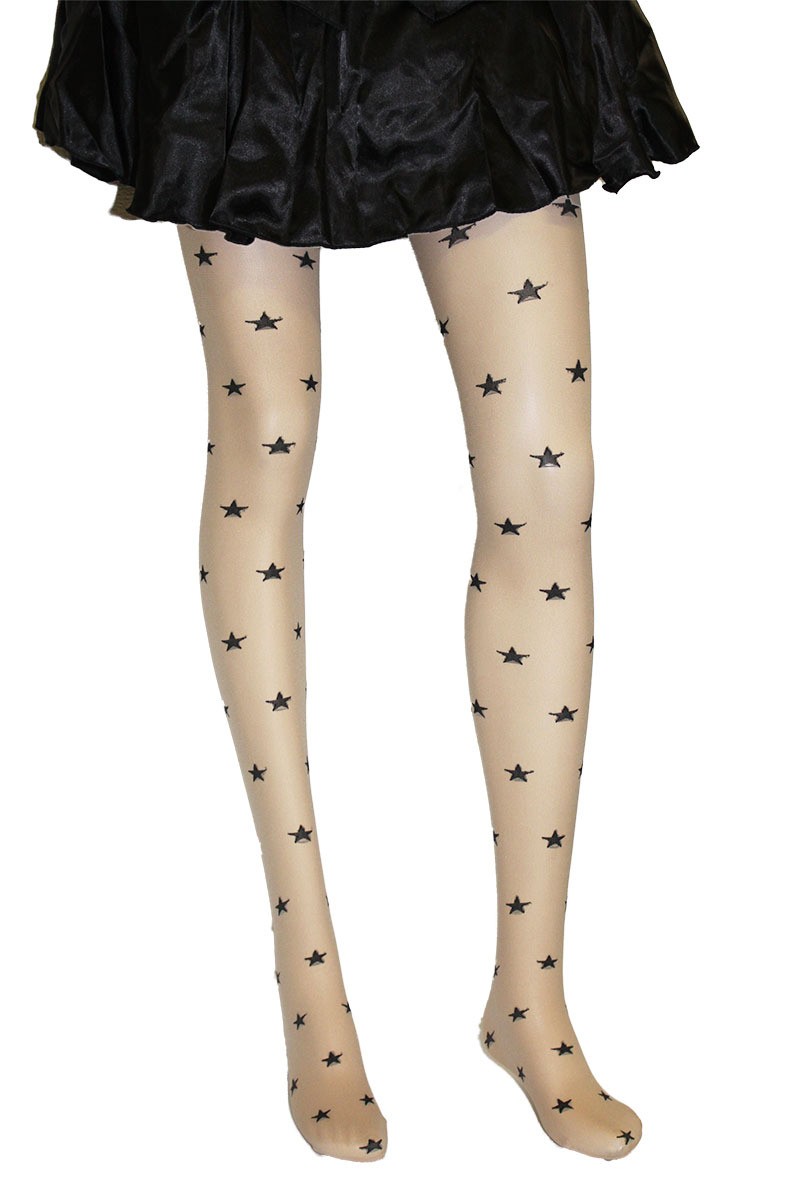 - NA プリント タイツ タトゥー ストッキング タイツ パンス パンティーストッキング セクシー 靴下 コスプレ 35デニール 星柄 ベージュ