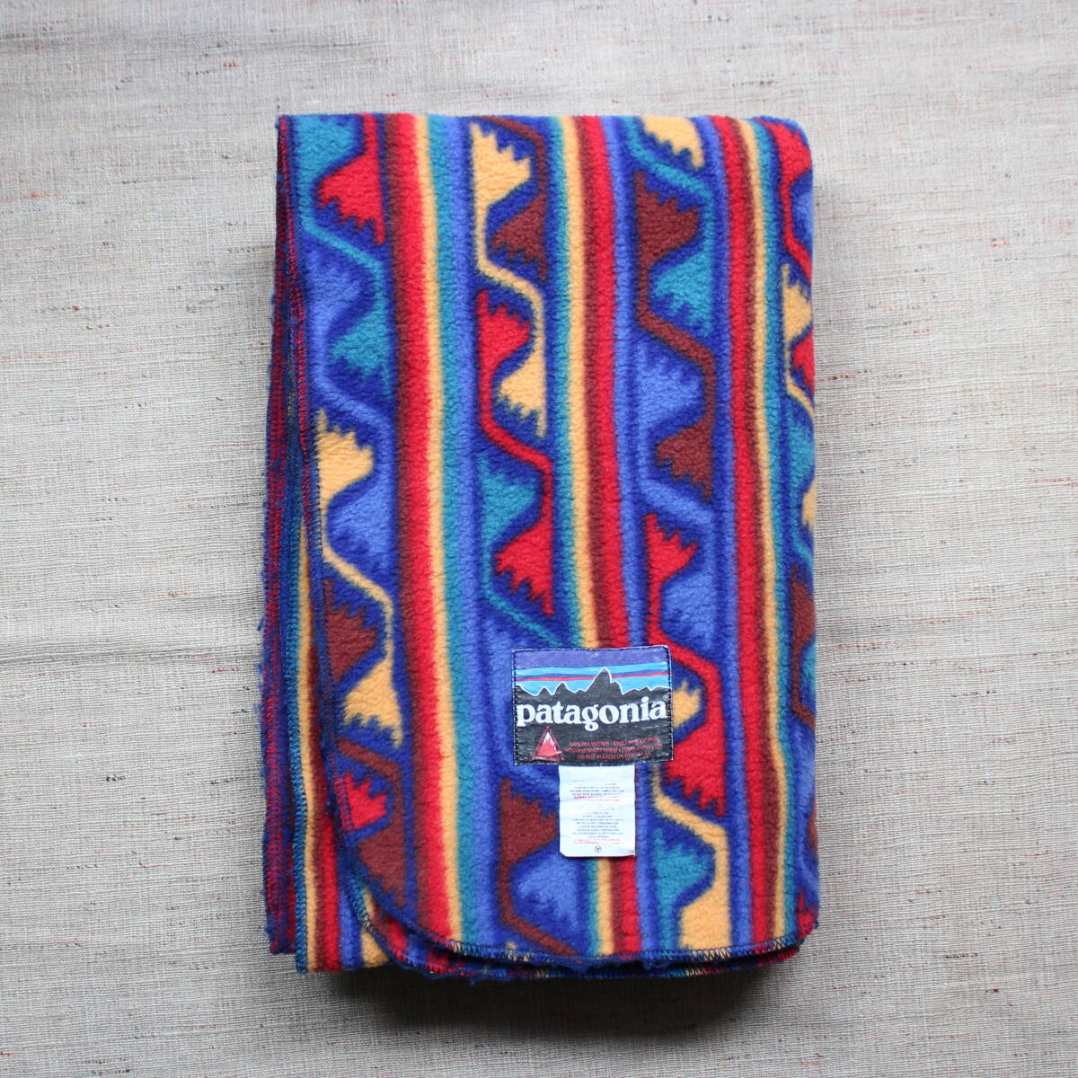 - レア 1990s パタゴニアPatagonia ヴィンテージ シンチラ フリースブランケット デカタグ アウトドア USAアメリカ製 幾何学 総柄 毛布 FA99