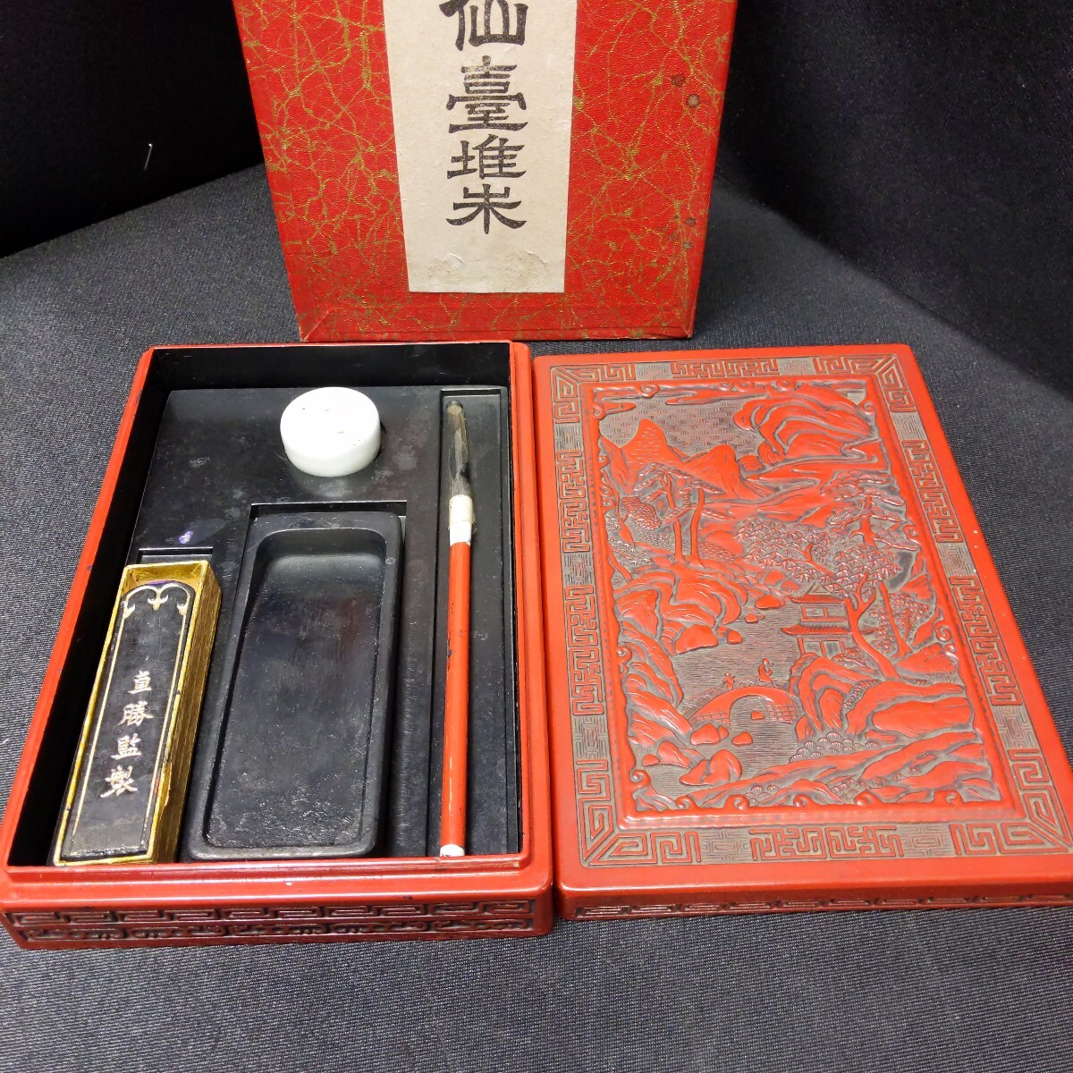 - 仙台堆朱 すずり箱 仙台銘産 書道具 硯 墨 筆 書道 すずり 硯箱 セット 13.3×20×4cm mk711