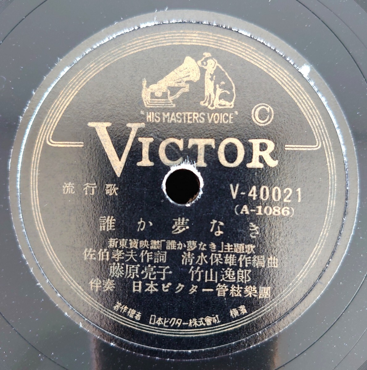 - 【SP盤レコード/全周にビリ音】VICTOR V-40021 流行歌/ 新東宝映画「誰か夢なき」主題歌/同題 藤原亮子 竹山逸郎/晝も夜も 吉岡妙子