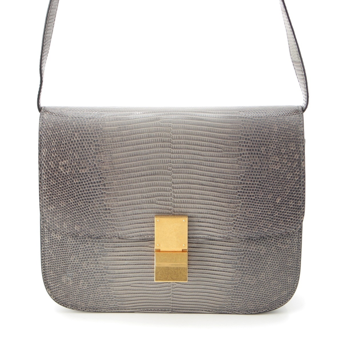 - セリーヌ リザード クラシックボックス ショルダーバッグ グレー【中古】