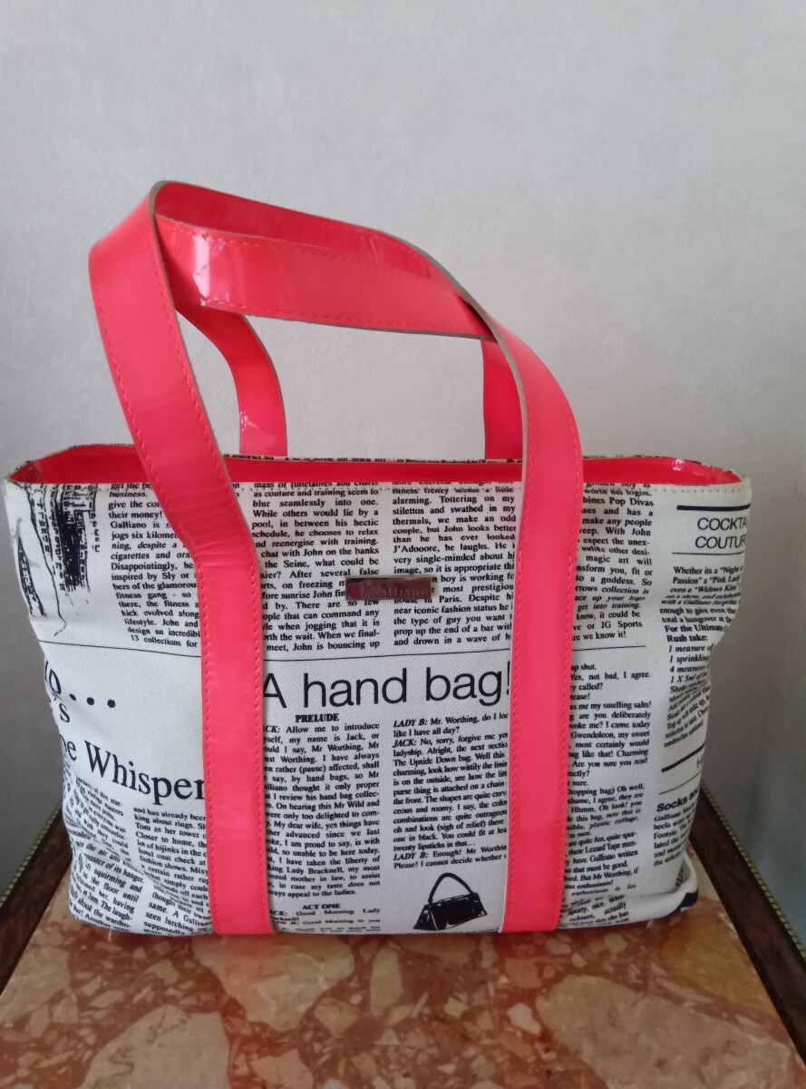 > John Galliano ジョン ガリアーノ ニュースペーパー柄 × パテントレザーバッグ ピンク