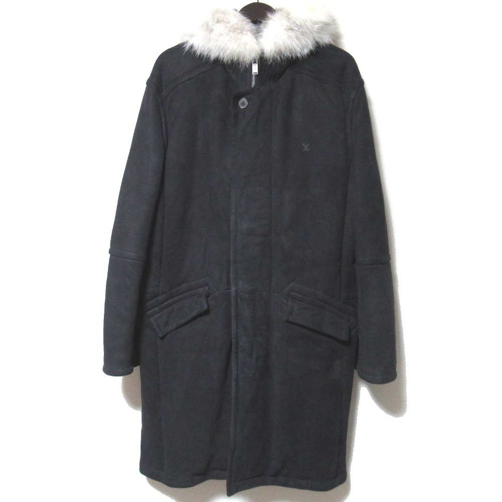 > 美品 LOUIS VUITTON ルイヴィトン フォックスファー フーディー ムートン モッズコート RW052Q MHLJ10KOK 48サイズ ブラック