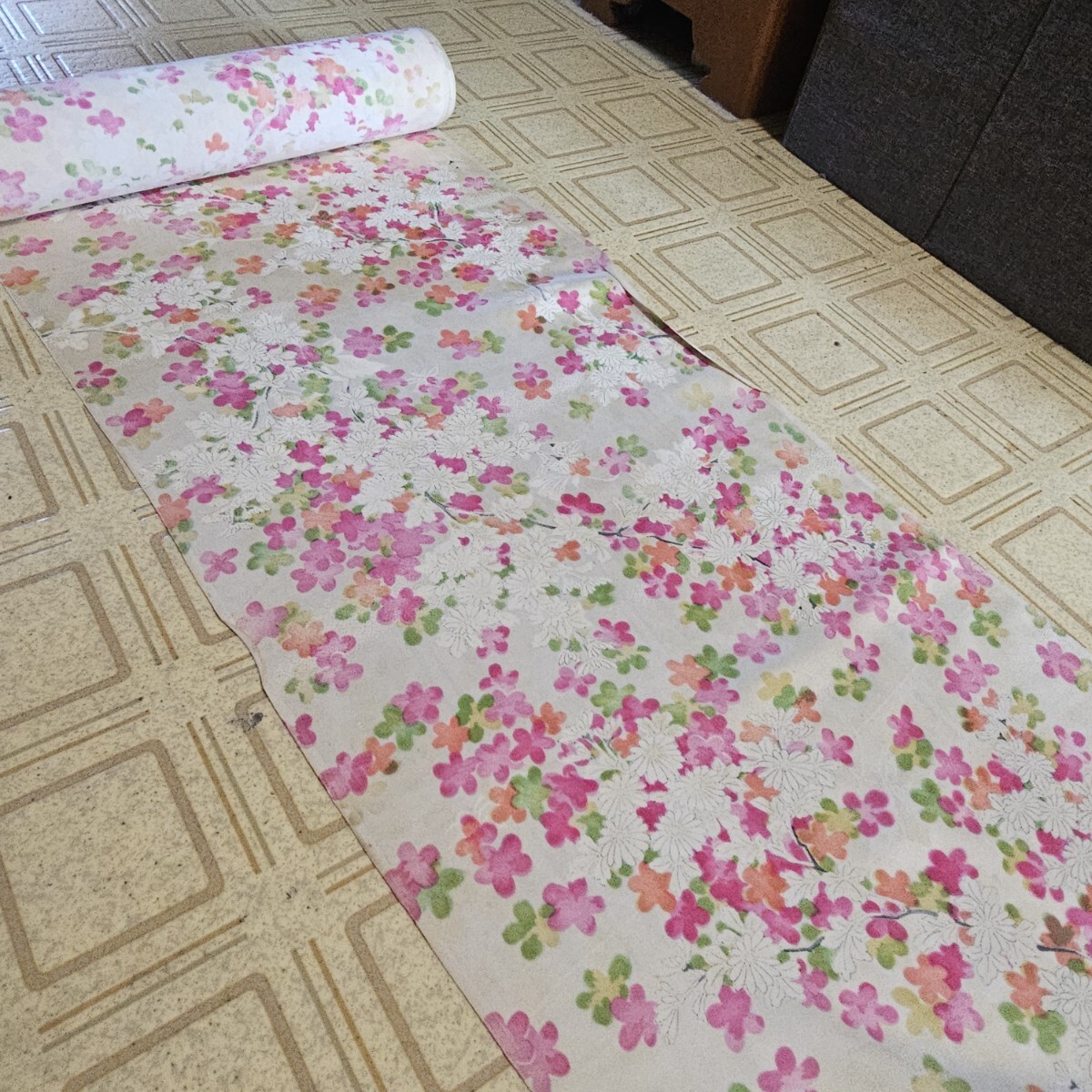 - 丹後ちりめん 草花文 駒綸子 絹100% 反物 染着尺 幅約37cm 長さ約12m
