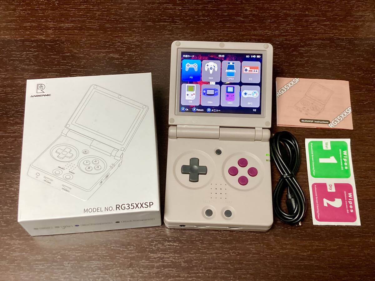 - 【ほぼ新品】Anbernic RG35XXSP ゲームボーイアドバンス風 レトロゲーム互換機 SFCホワイト FC〜GBA〜PSP〜PS1 付属品完備