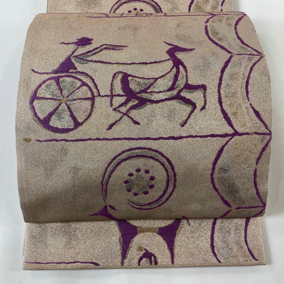 - 袋帯 美品 名品 関西仕立て 馬車 動物 箔 薄小豆 六通 正絹 【中古】