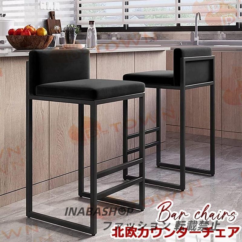 - 北欧カウンターチェア バーチェア カウンターチェア 65cm メタルフレームとフットレスト付き カウンターチェア バー ベルベット