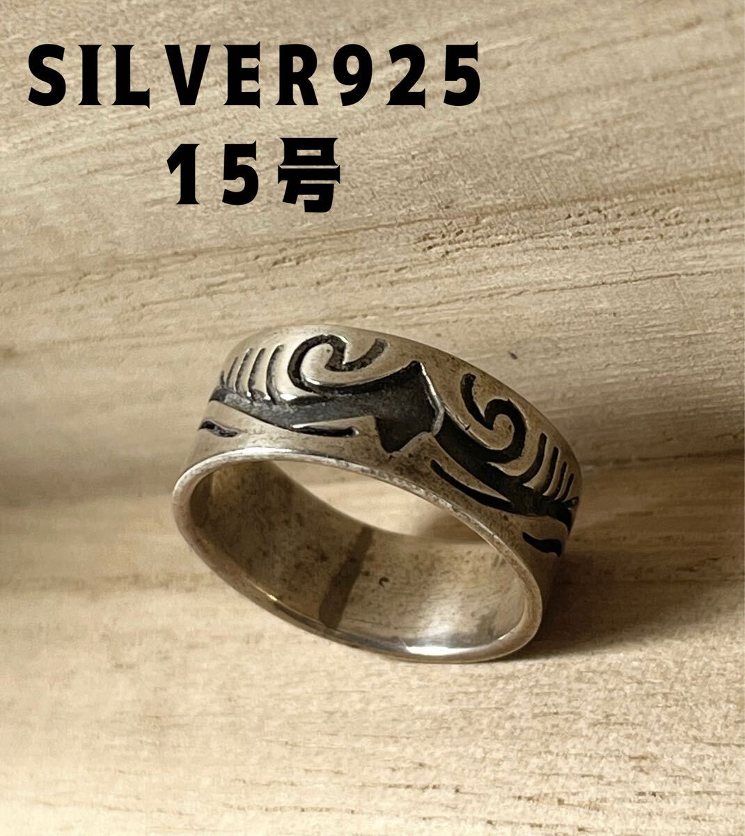 - YQ46Ezき SILVER925 トライバル柄シルバー925リング銀平打ち柄あり15号SVきE
