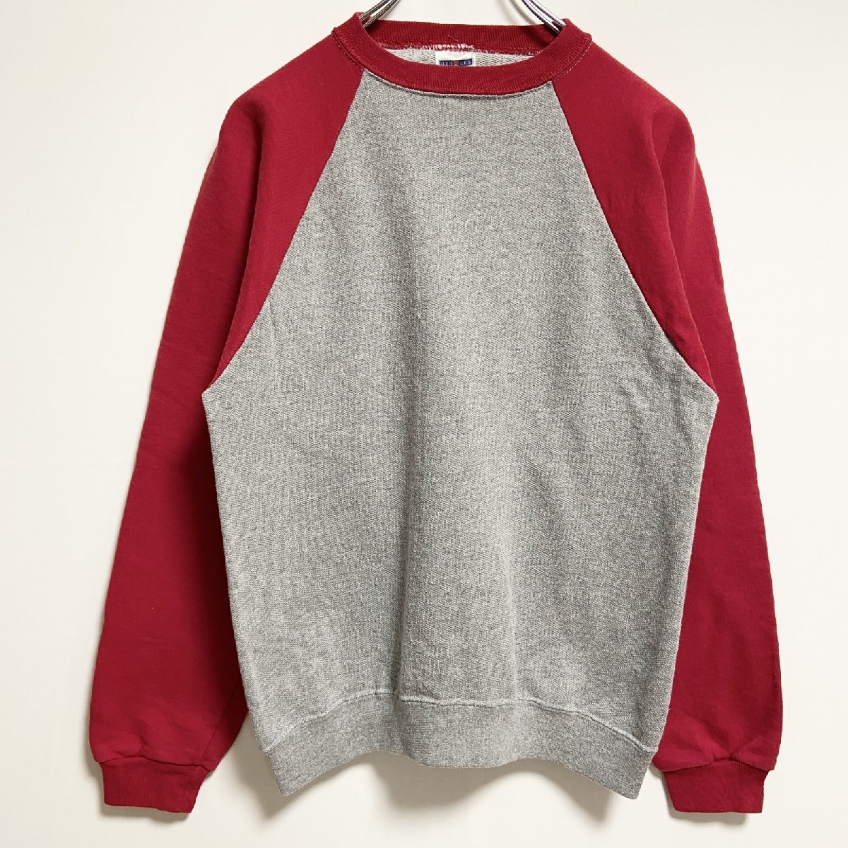 - 古着 used JERZEES ジャージーズ 長袖ラグランスリーブスウェット トレーナー グレー レッド Sサイズ