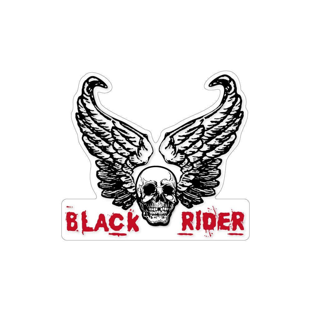 > (透明)ブラックライダー エンジェルスカル ステッカー 小 7cm ブラック×レッド バイク ヘルメット ワンポイント 骸骨 ドクロ
