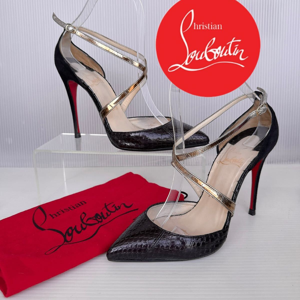 > Christian Louboutin クリスチャンルブタン ストラップ サンダル ハイヒール パンプス ポインテッドトゥ 36.5 靴 シューズ レーディス 黒