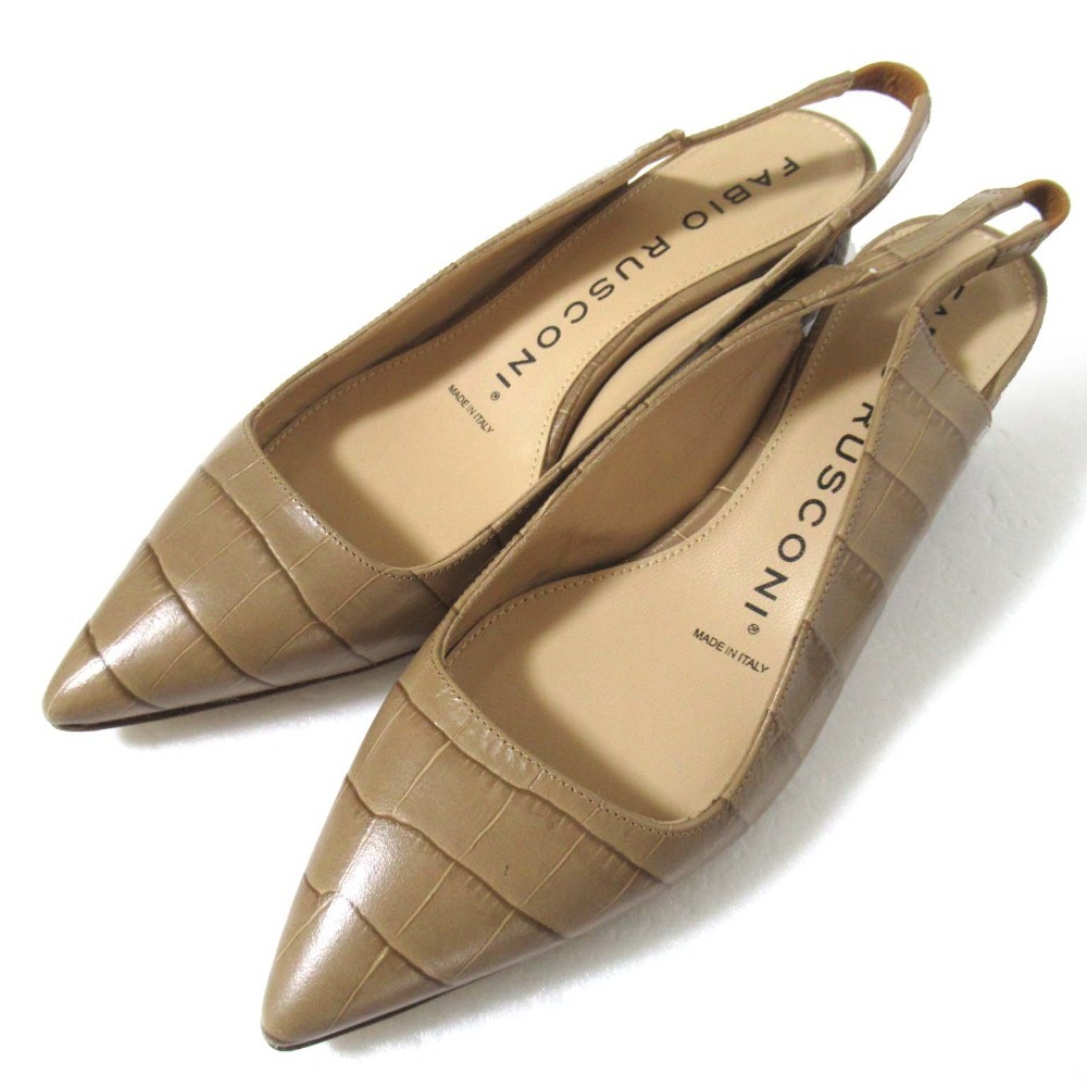 - 新品同様 FABIO RUSCONI ファビオルスコーニ クロコ型押し ポインテッドトゥ スリングバック ミュール パンプス 37.5 約24.5cm ベージュ