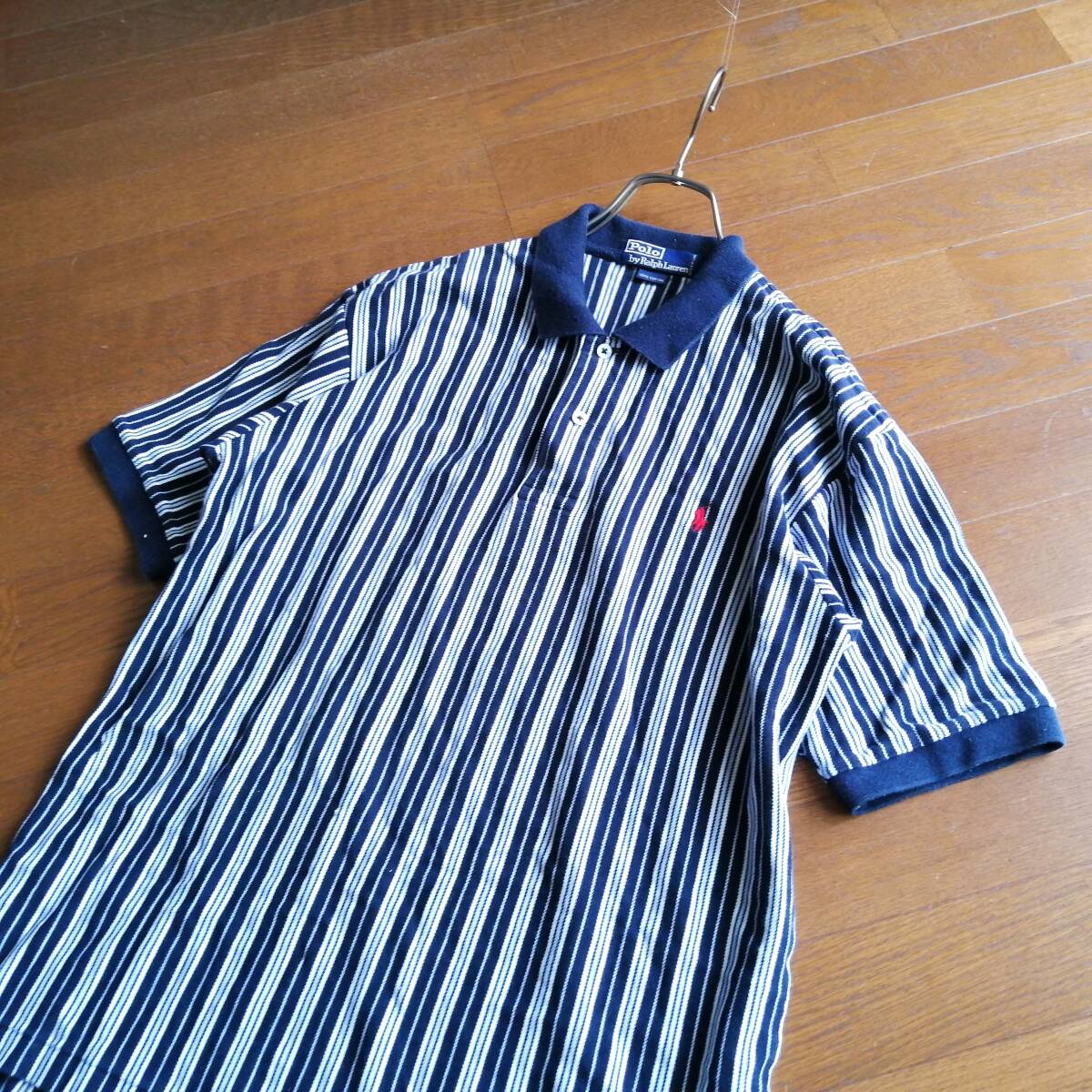 > POLO RALPH LAUREN ポロラルフローレン ポロシャツ ストライプ ネイビー系 Mサイズ 25-0819fu08【4点同梱で送料無料】