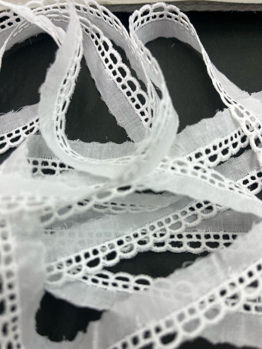 - △(NT027-1)1反売りー約1.6㎝巾の白の綿レース(13.7m)