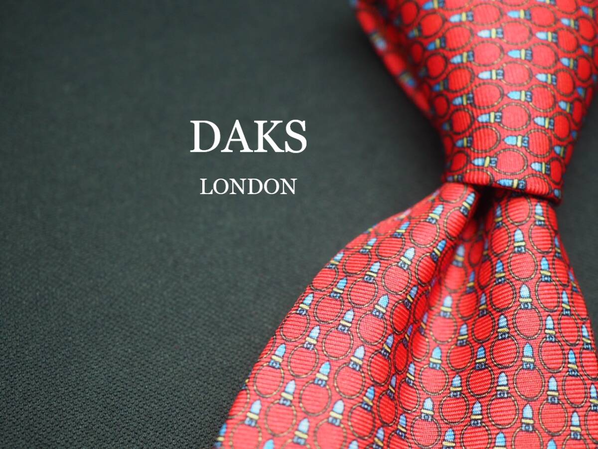- 美品【DAKS ダックス】 F1523 赤系 SILK ブランド ネクタイ 古着 良品