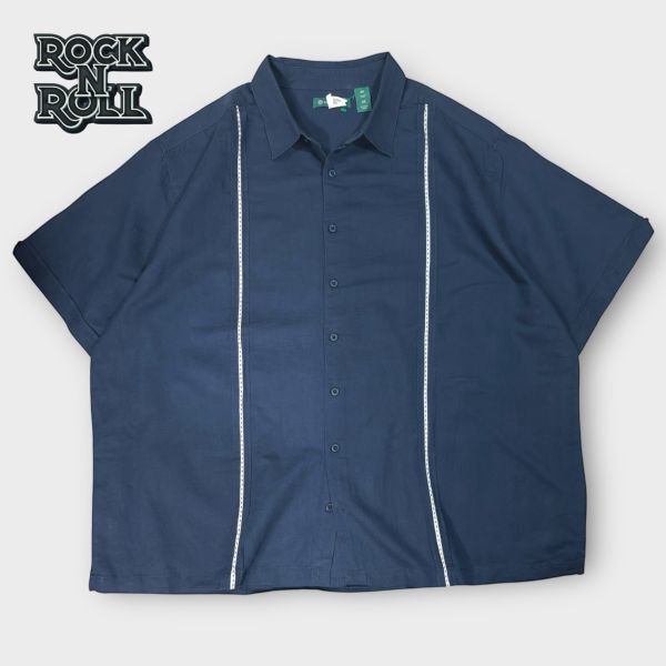 - ★50'Sスタイル★リネン混★超BIGサイズ★ステッチライン切替し★CUBAVERA 半袖シャツ size2X スリット ロックンロール 古着 洗濯済み 785