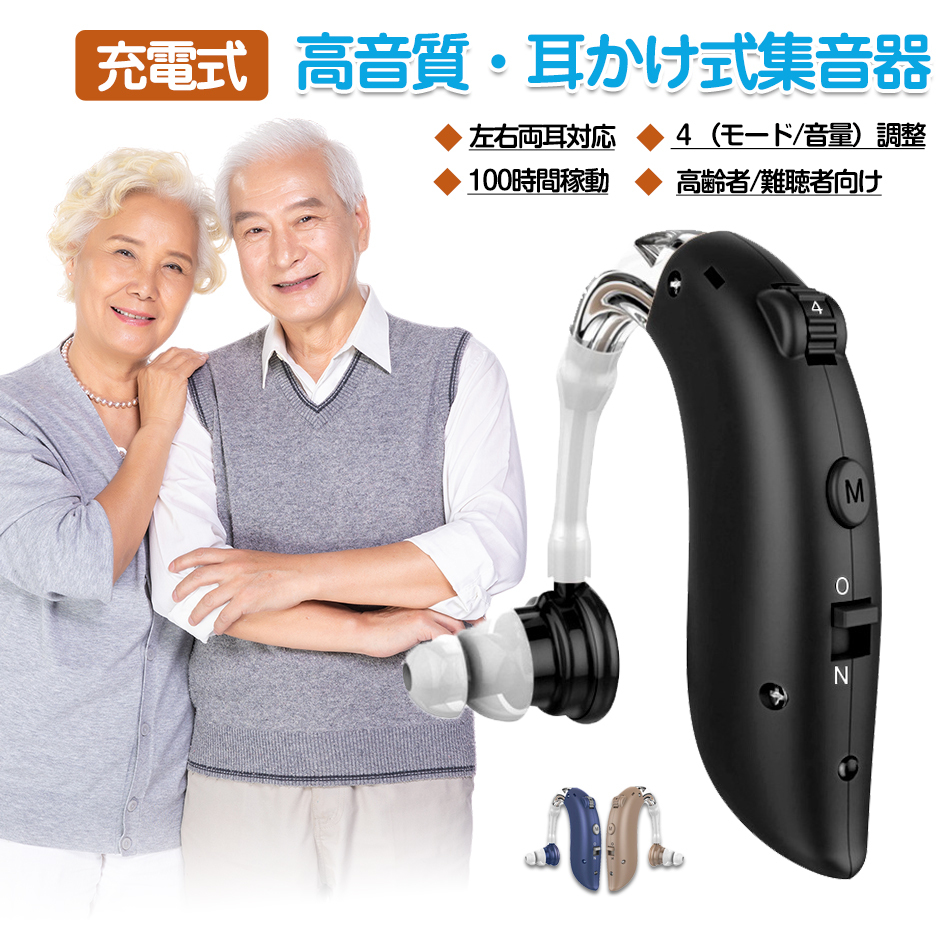 - 【ブラック】高齢者・難聴者適用 集音器 音声拡張器 耳掛けタイプ 左右両用 充電式 音量4段階調整 環境騒音低減 高音質 ノイズ抑え ec-045