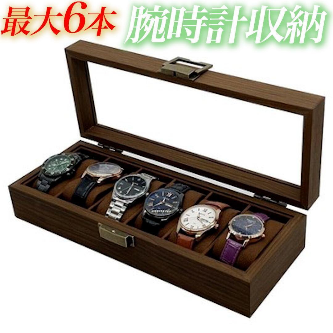 - 時計ケース 6本用 木製 木目 腕時計 収納 高級 ボックス プレゼント コレクション 透明窓付き 展示 ディスプレイケース アクセサリー