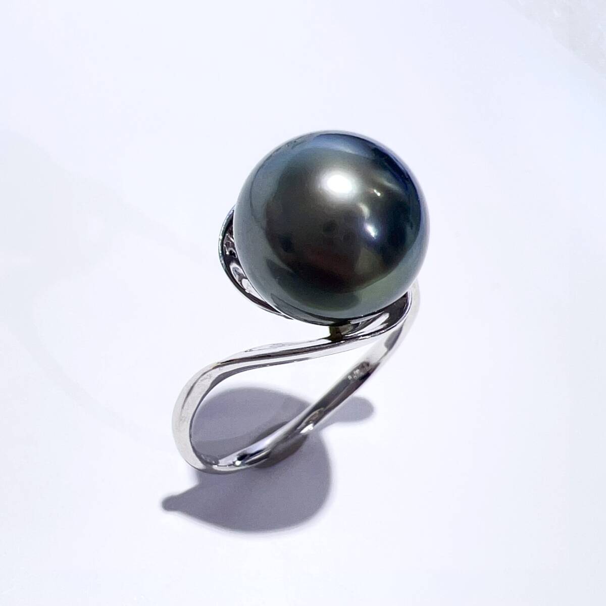 > K18WG 天然 黒蝶 タヒチ パール ダイヤ リング 本真珠 11mm D0.05ct 4.6g 16号 レディース アクセサリー 指輪 美品
