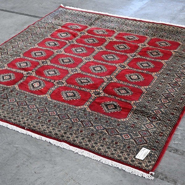 - 新品 未使用 パキスタン製 手織り ウール絨毯 トライバル柄 メダリオン文様 ラグ 羊毛 カーペット ハンドノット リビング 書斎 応接室 P-1