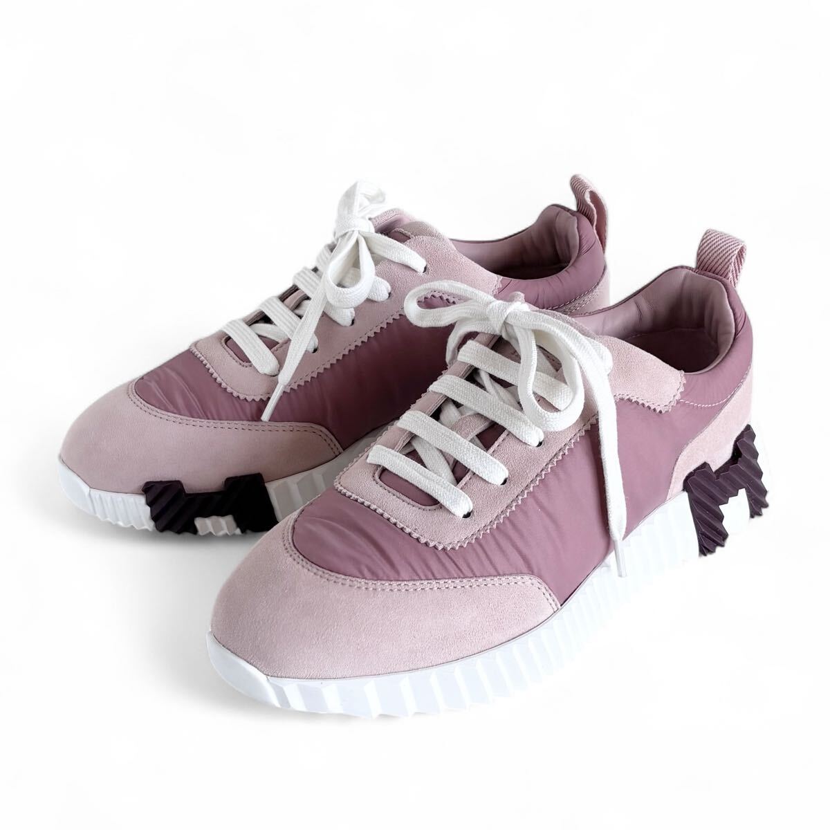 - 美品 HERMES バウンシング スニーカー 35 ピンク ナイロン スエード エルメス 靴 レディース 22cm位