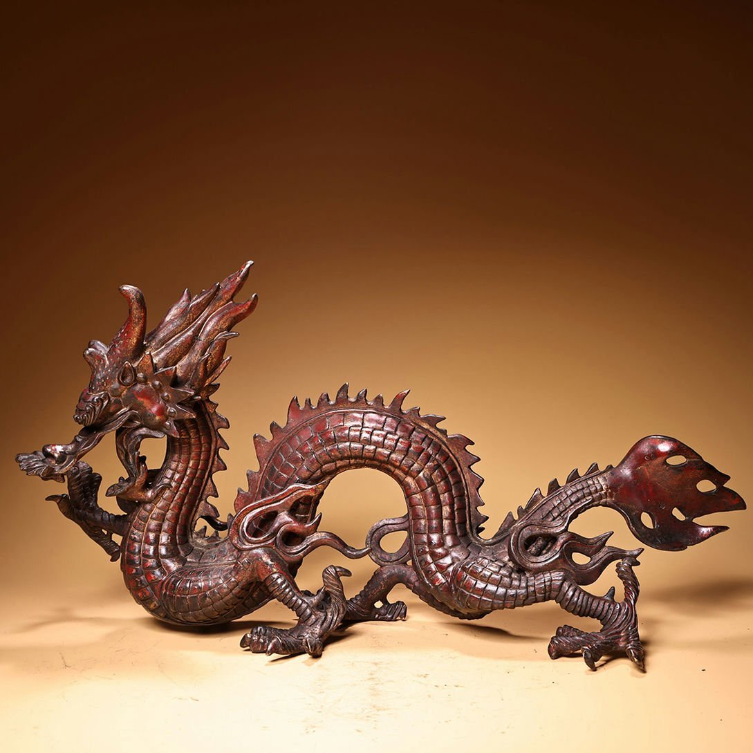 - ◆羽彰・古美術◆Y0661清時代 銅製高浮彫鏨刻塗金龍 細密細工★古置物★古賞物★古擺件★蒐集家放出★唐物