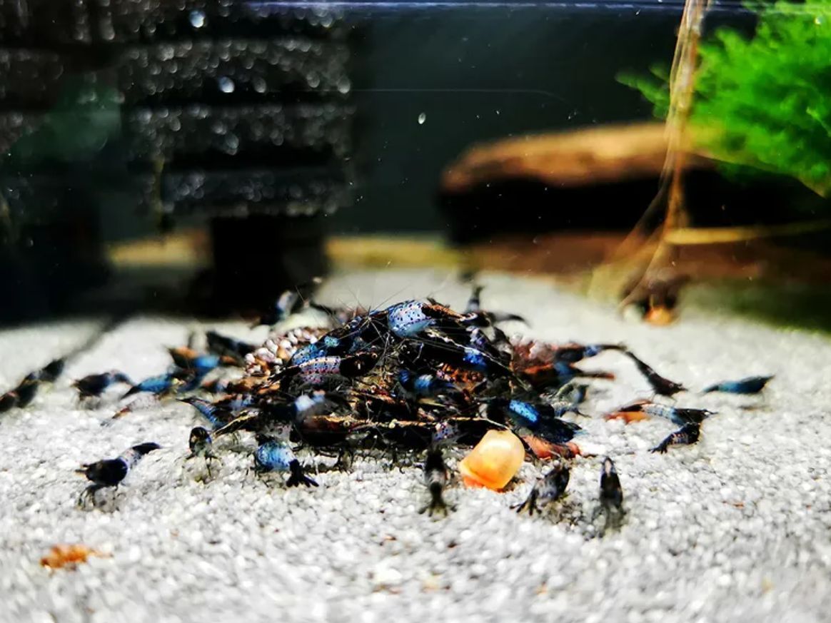 > 『Jellyfish』カーボンルリーシュリンプ30匹+死着保障 サイズ約0.8㎝~1.5㎝前後(送料無料・雄雌抱卵個体無選別水槽から)