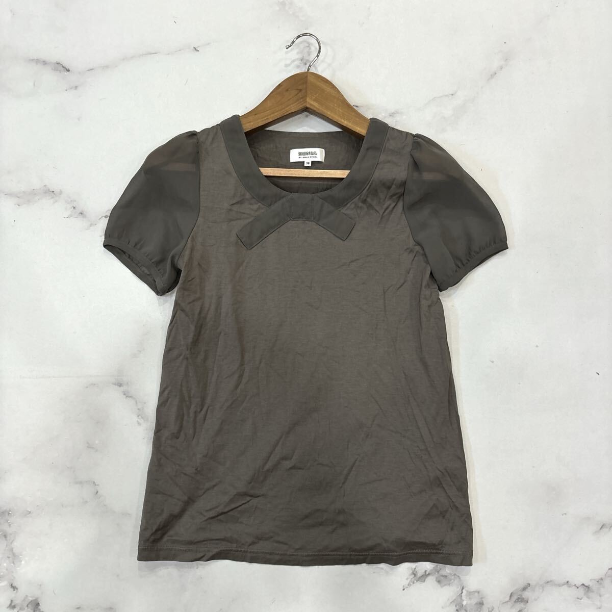 - J * 国内正規品 '高級感溢れる' SONIA RYKIEL ソニアリキエル 半袖 袖シースルー 異素材切り替え Tシャツ / カットソー 38 レディース