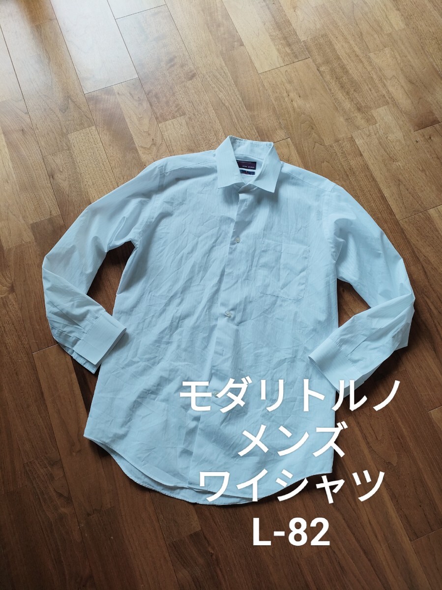 - モダリトルノ メンズ 長袖 ワイシャツ ストライプ L-82 白