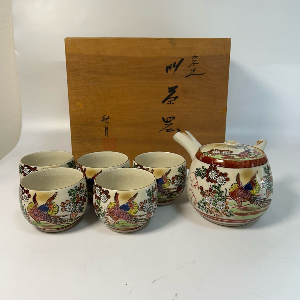 - 九谷焼 茶器セット 九谷秋月 煎茶道具 急須 湯呑み 湯飲み 食器 茶器 金彩金縁 ム13