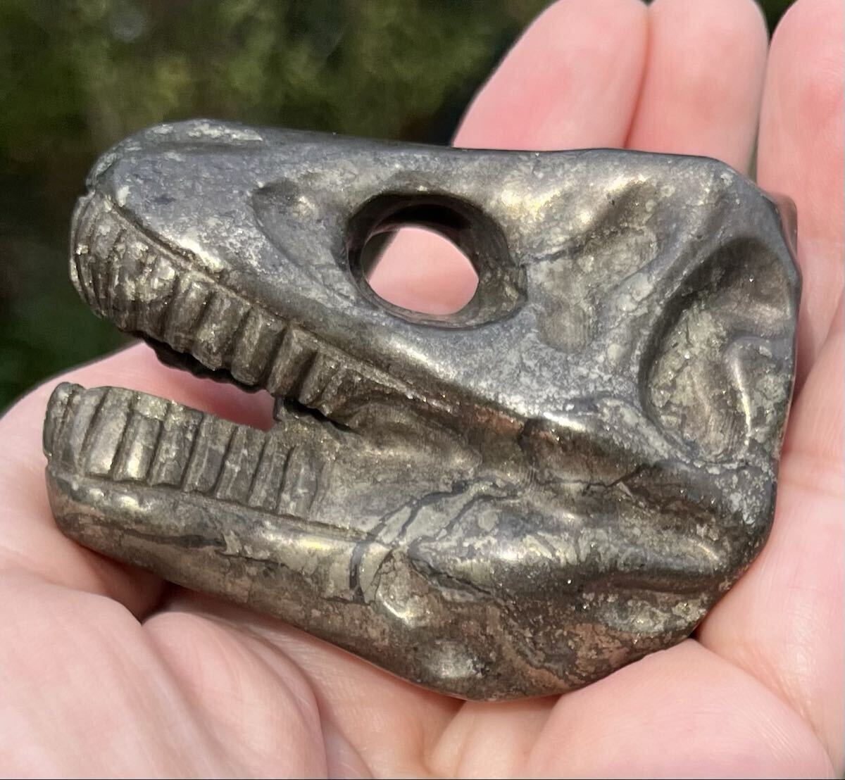 > Good クオリティー!ジェラシックパーク、ワ-ルドファンの皆様 パイライト天然石ダイナソ-ヘッドSale !