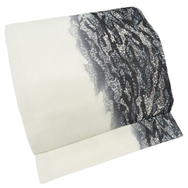 > 夏物 夏帯 名古屋帯 なごや帯 中古 リサイクル 正絹 カジュアル 仕立て上がり 作家物 落款 灰黄緑色 黒色 きもの北條 A1259-10