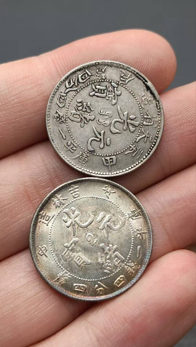 - 早期収集 光緒元宝 一錢四分四厘銀毫兩枚 小銀元 銀幣 錢幣 貨幣 純銀保證 極細工 古賞物 古美味 東洋彫刻 時代物 骨董 中国古美術
