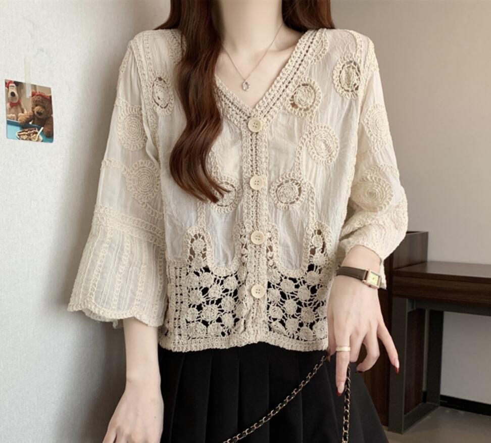 - 人気推薦/カーディガン 刺繍 シャツブラウス レディース トップス 大きいサイズ ゆったり 大きいサイズ Vネック レース シャツ 羽織 薄手
