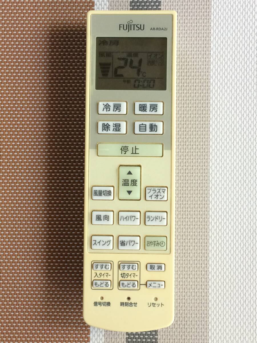 - 黄ばみあり★送料無料★FUJITSU★富士通ゼネラル★純正★エアコン用リモコン★AR-RDA2J★中古★動作品★返金保証あり☆