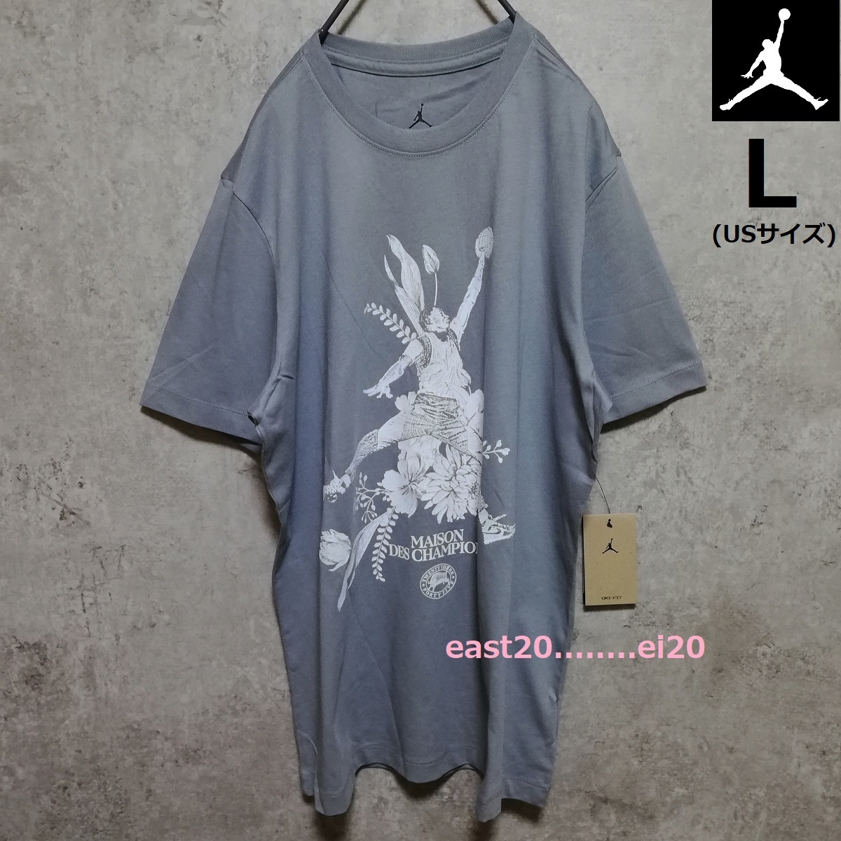 > 新品 NIKE JORDAN JUMPMAN ナイキ ジョーダン ジャンプマン フラワー ビッグ プリント Tシャツ L (US) グレー 未使用 バスケ 即決 送料無料