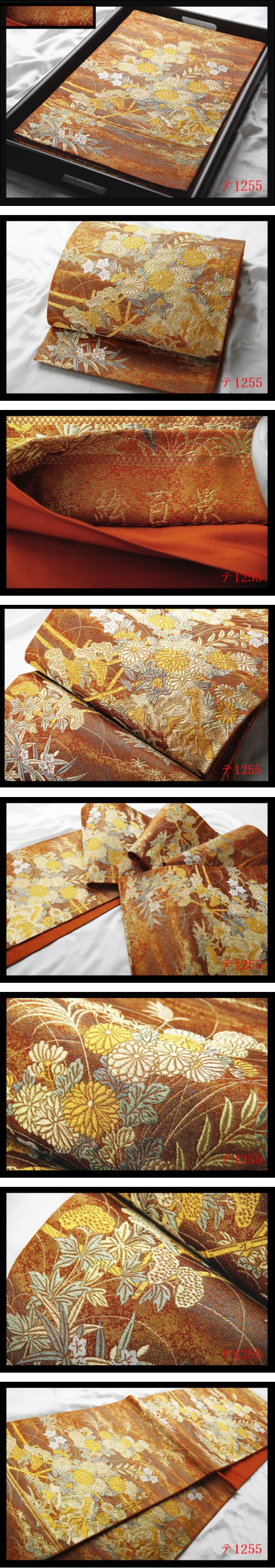 - 蔵【テ1255】厳選逸品 蒔絵百景 赤朽葉色地 気品豊かに 正絹六通高級美術袋帯 ◇検簪着物名古屋帯和装小物帯締め