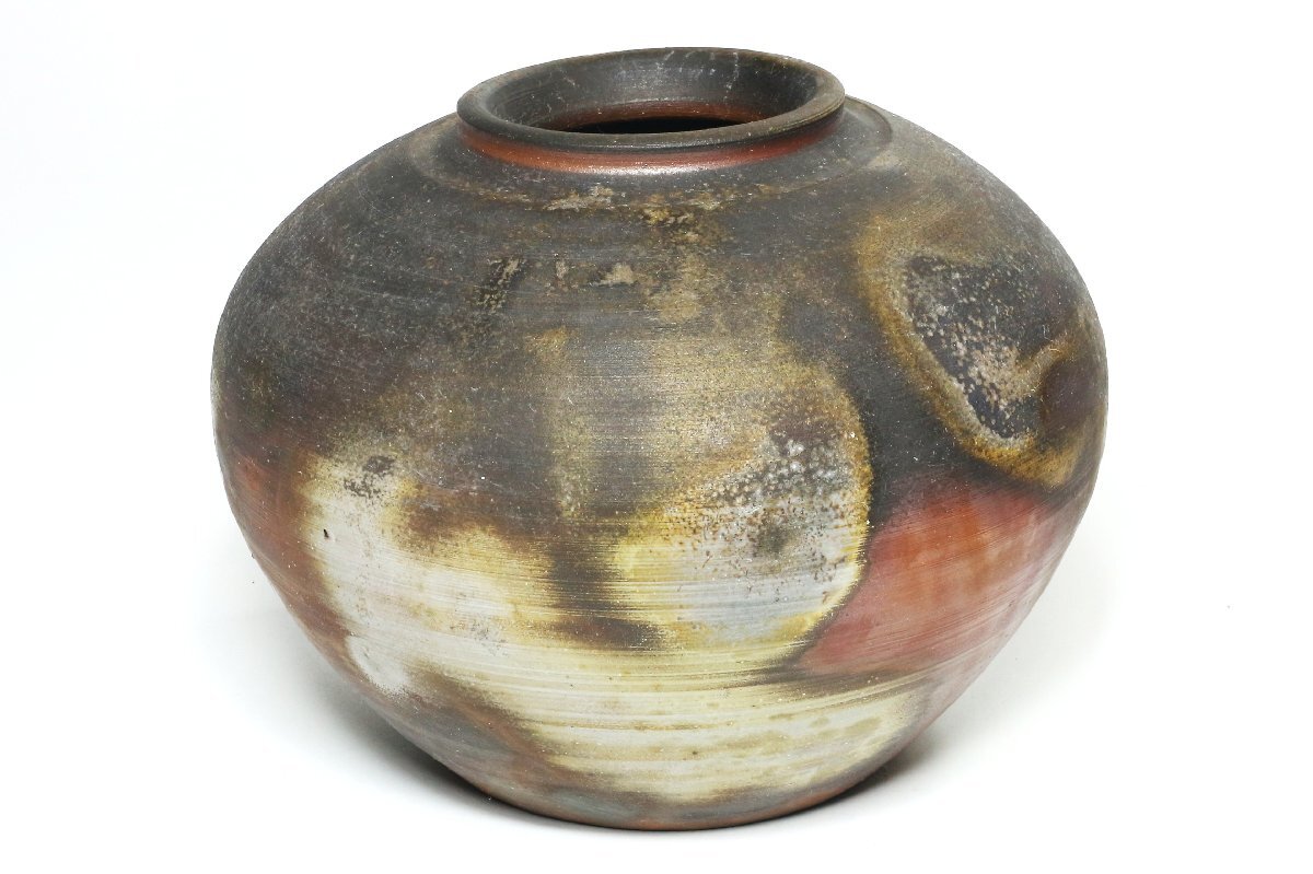 ・備前焼 壷 高さ18.5cm 在銘 /備前壺 花器 花入 花瓶 花生