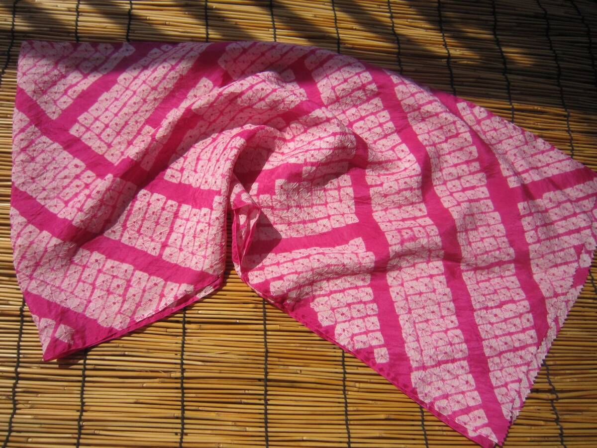 ■古い生地からリメイク、アンティークな蜘蛛絞り染め。とても愛らしいピンクです。
