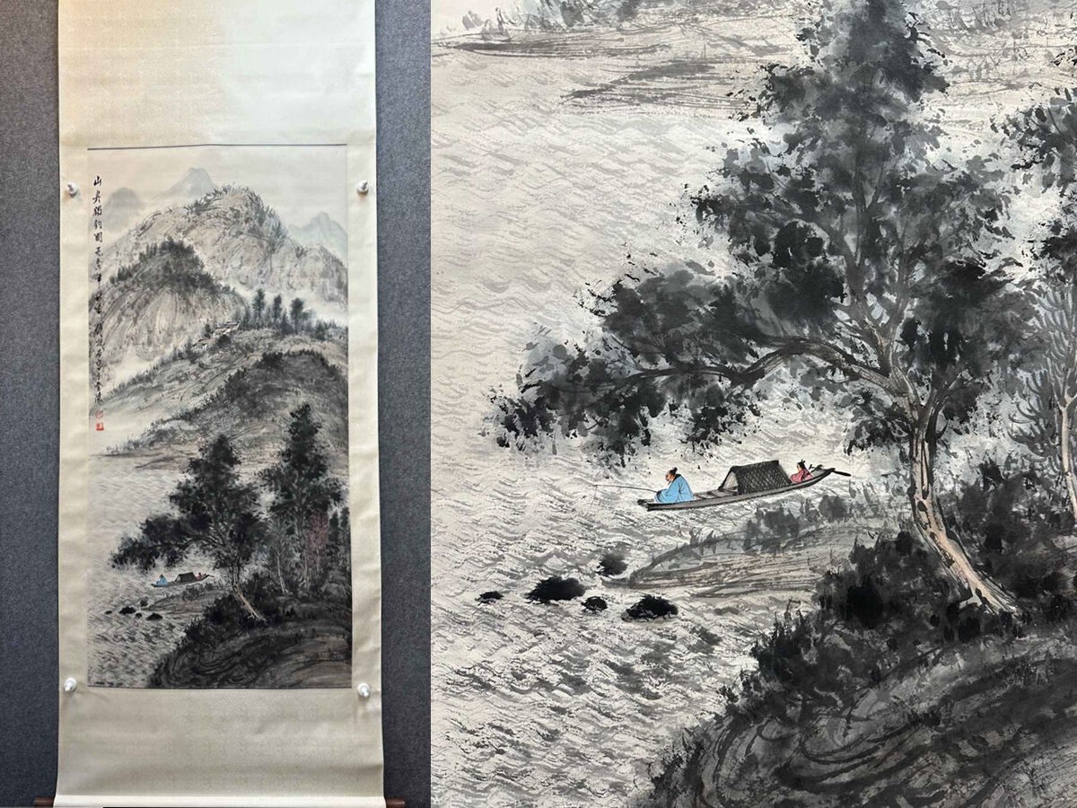 - 中国書画「傅抱石 山水図」肉筆紙本 掛け軸 墨寶妙品 書画立軸 巻き物 古美術 旧蔵出