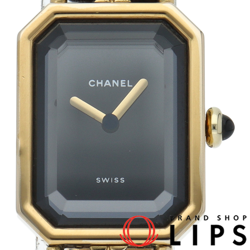 > シャネル プルミエールM ウォッチ H0001 箱 保証書 GP/革 レディース時計 ブラック 仕上げ済 美品 中古