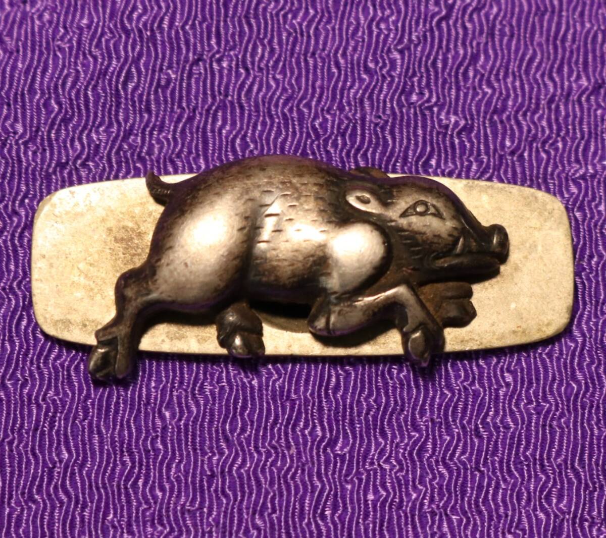 - 銀色目貫~猪~煙草入用 骨董 アンティーク