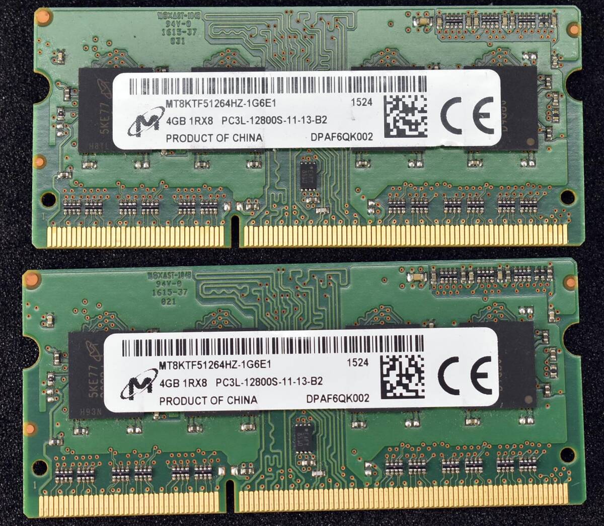 - 4GB 2枚組 (合計 8GB) PC3L-12800S DDR3-1600 S.O.DIMM 204pin 1Rx8 MT micron (動作確認済) (管:EN76 x1s