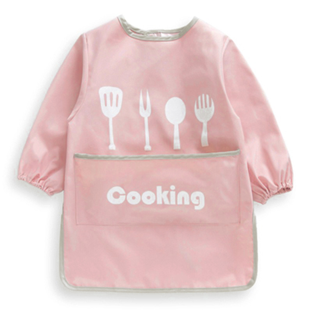 - ☆ ピンク ☆ 90サイズ スモック 撥水 長袖 通販 子供 キッズ 子ども こども 90 100 110 120 130 エプロン ロング ロング丈スモック 長袖