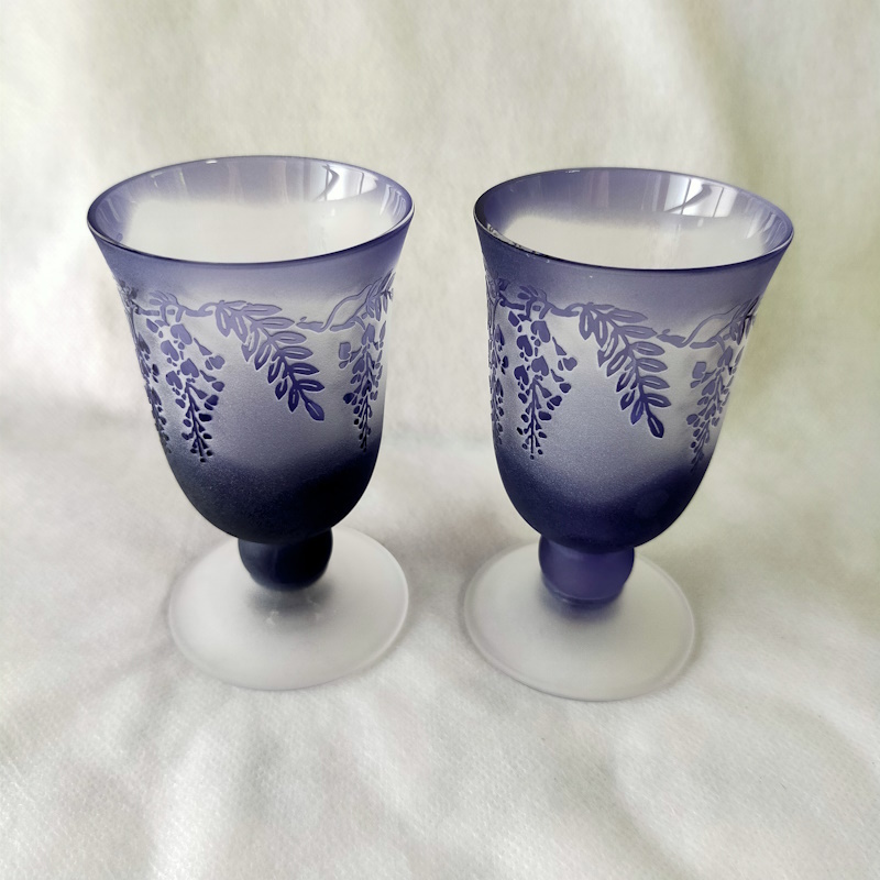 - 藤の花のミニグラス2個セット ワイン 冷酒 サンドブラスト