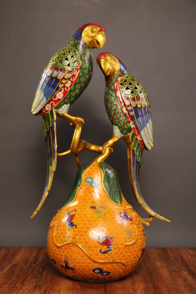> 古銅 仏像 清時代 純銅 景泰藍香炉 オウム薫香炉 大置物 置物 立像 古物保証 銅製 神獣 置物 旧家整理品 中国古美術 子供置物 821