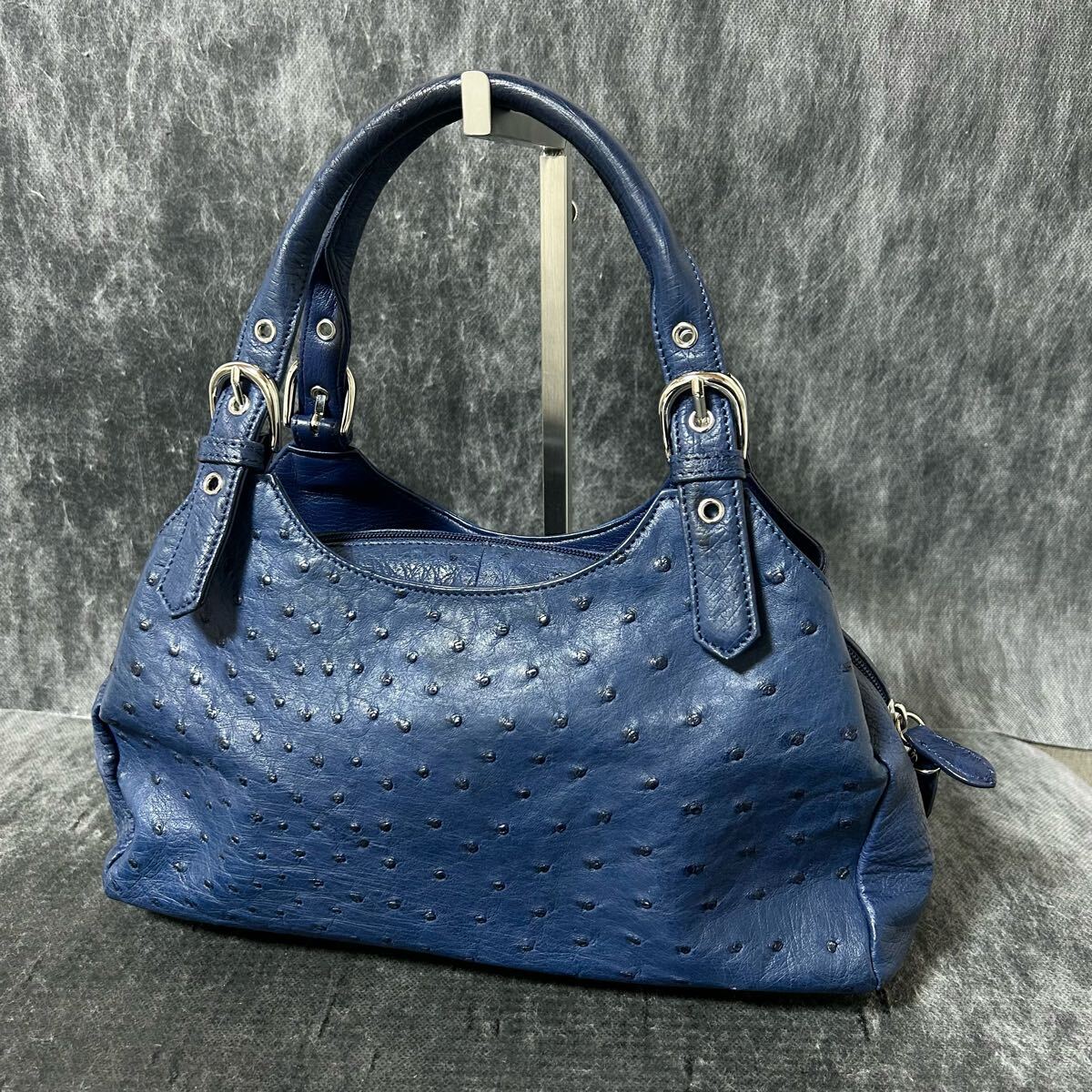 - オーストリッチレザー ハンドバッグ エキゾチックレザー ブルー *112